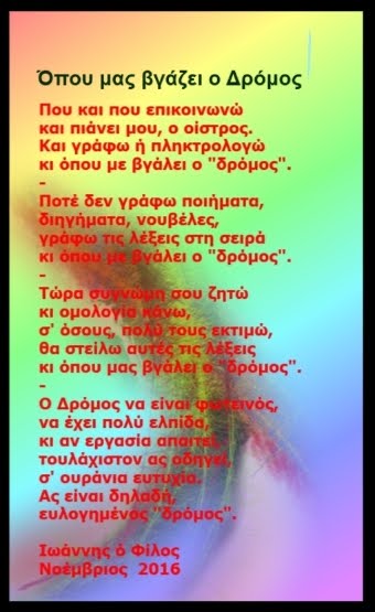 Κι όπου μας βγάλει ο Δρόμος Εικονογραφίες Πονήματα Στοχασμοί 10 Νοεμβρίου, 201627 Δεκεμβρίου, 2024Hellinika.Gr And Φίλε μου, δοκίμασε ν’ ακούσεις μου το μήνυμα,που σου έχω ετοιμάσει. Έργον Επικοινωνία MichaelidesPost 2016 Post Views: 72